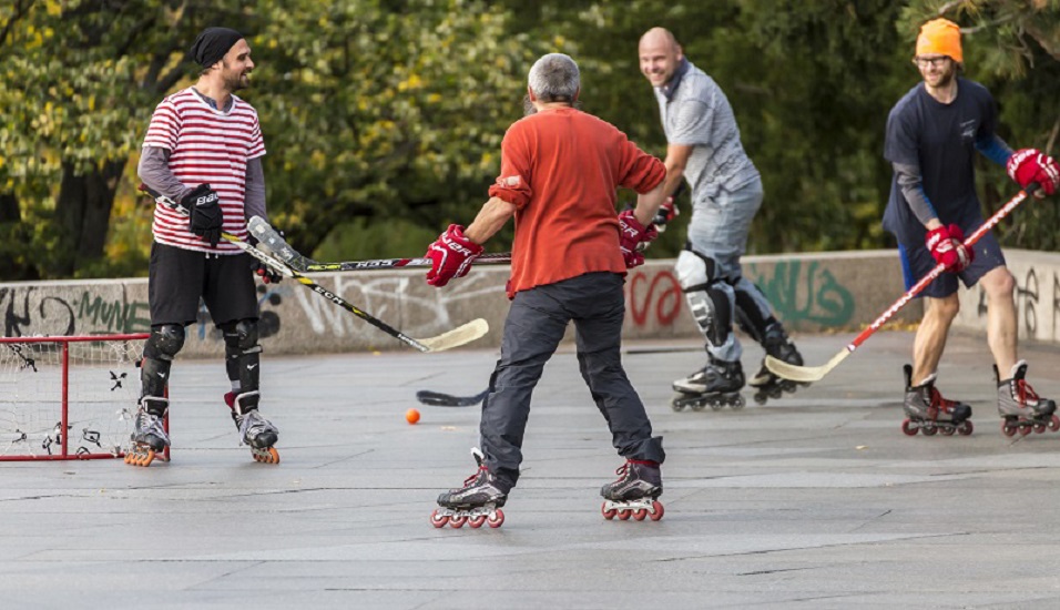 Le street hockey se joue avec des rollers ou des quads, ainsi qu’une crosse