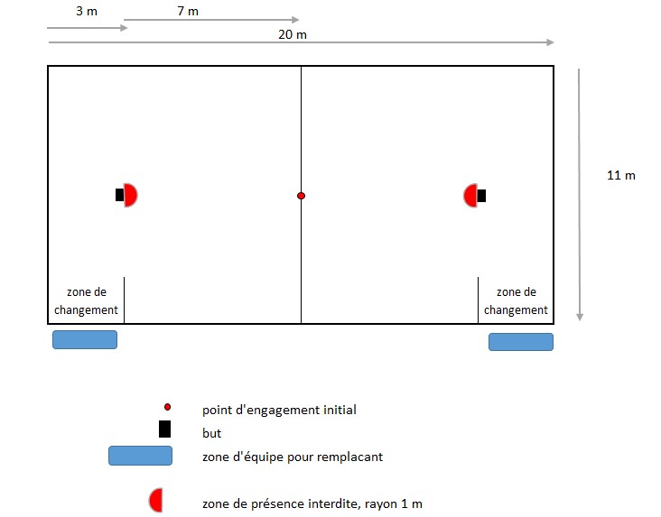 Interdiction de stationner 1 mètre autour du but. Le palet est rendu à l'autre équipe en cas de stationnement